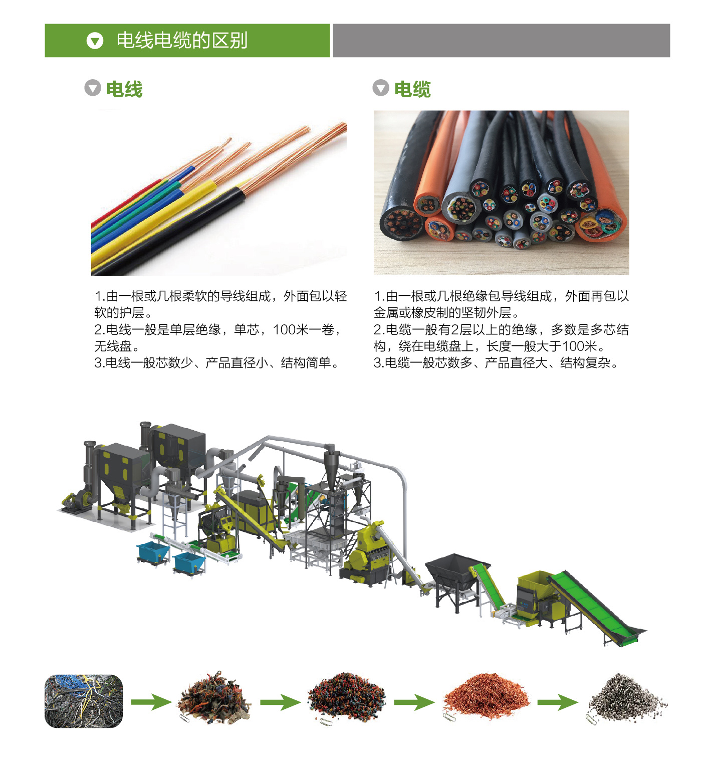 首頁 >> 產(chǎn)品展示 >> 固廢回收處理線 >> 電線、電纜銅米粉碎分離線